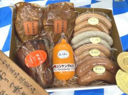 ■ 焼豚1本(275g以上)、腸詰4種類(11本入り)、豚赤味噌漬2P(4枚入り)、シンケンヴルスト1本(200g以上)