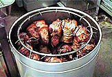 この方式は時間がかかり量が限られる為、大量生産出来ませんが「炭の力」による遠火の強火で焼く事により、まわりは「焼き上げ」ながらも中の肉汁を封じ込める。遠赤外線効果により火を通す役割を果たします。